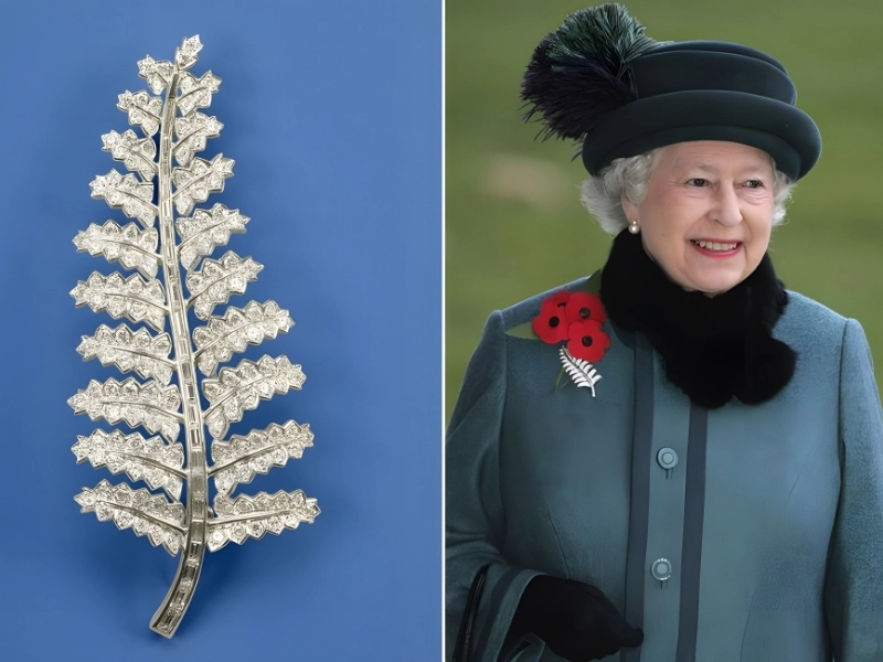 Additionally, Queen Elizabeth II has frequently been seen donning a sizable, elaborate silver fern brooch. The Queen received the New Zealand Silver Fern Brooch in 1953 from Lady Allum, who gave it to her on Christmas Day at Government House. The Queen wore the New Zealand Silver Fern Brooch to St. Mary’s Cathedral in Auckland on the day she received it.