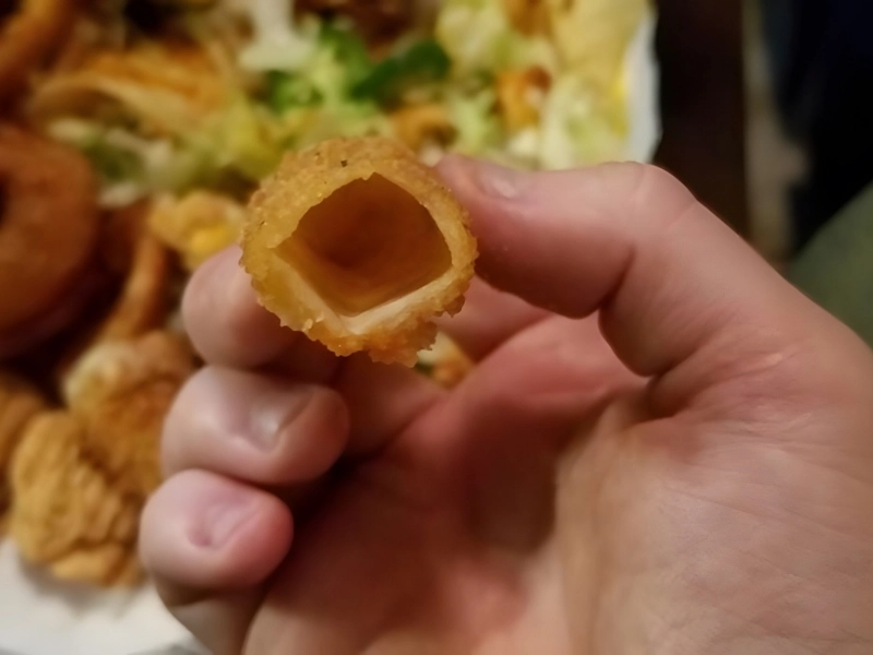 Nothing, even somewhat similar, was experienced by one consumer. Upon biting into his mozzarella stick, he found that it was completely devoid of any cheese—just empty air. The mozzarella stick is just too disappointing to say, even if the rest of the meal appears to be very nice.