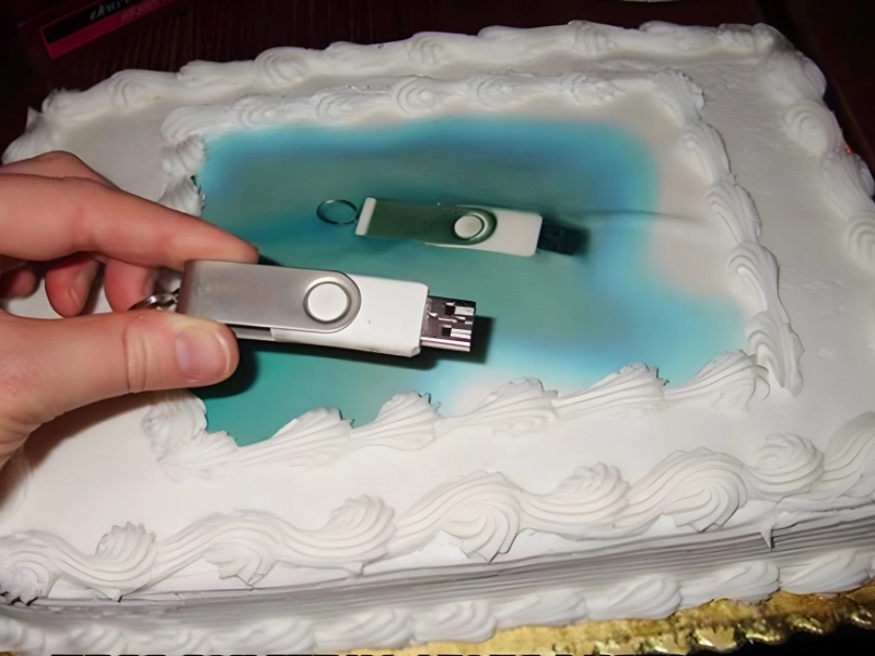 7. A printed cake with a USB stick photo