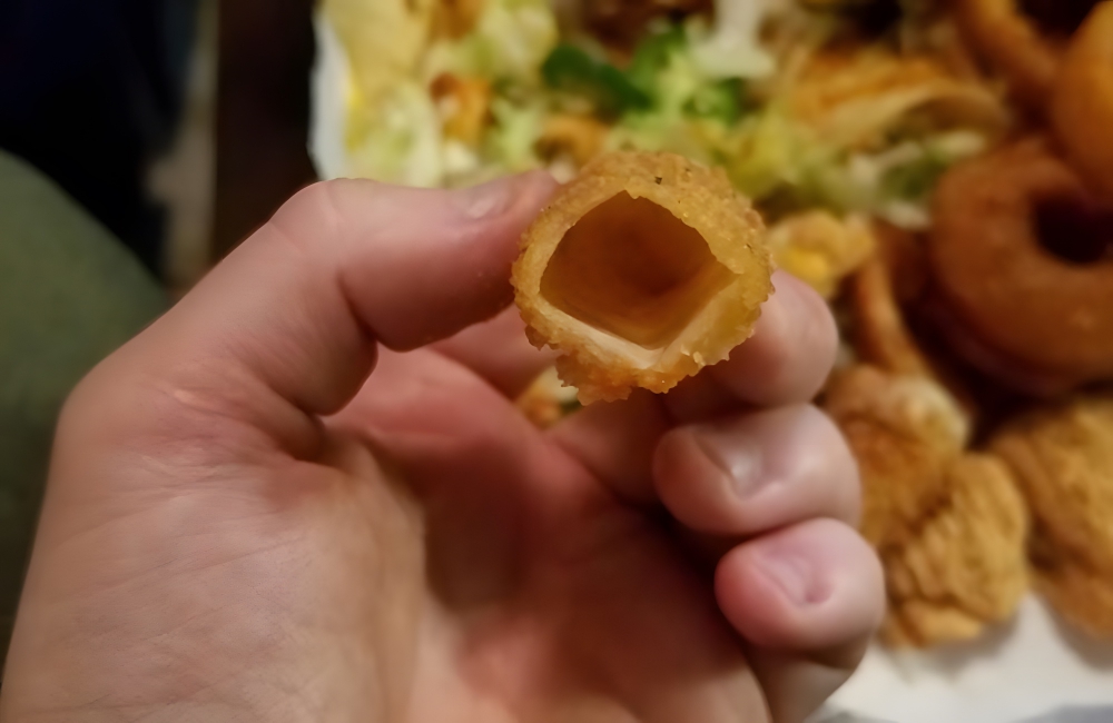 One customer did not get to experience anything even remotely close to that. When he bit into his mozzarella stick, the stick was totally empty—no cheese or anything, just empty air. Though, from what we can see, the rest of the meal looks pretty good, the mozzarella stick is just too disappointing for words.