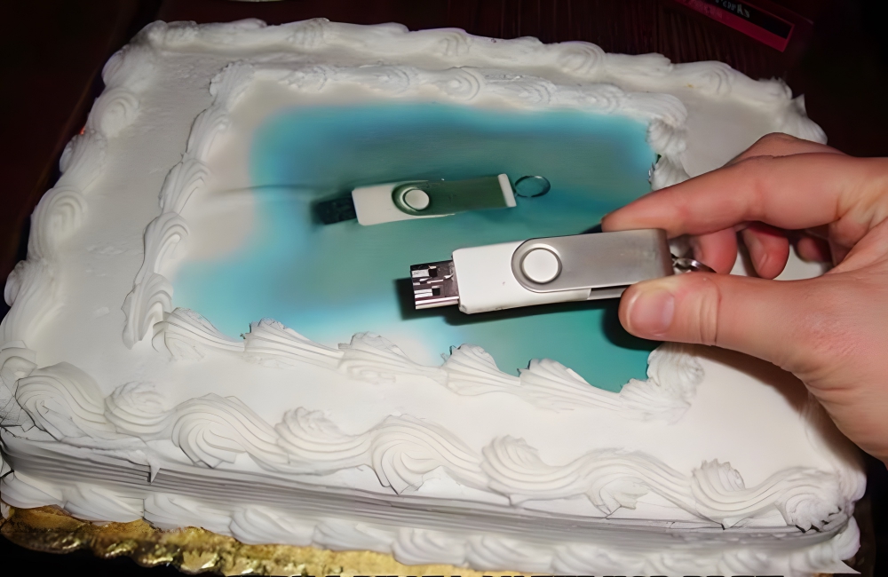 The conversation at the bakery must have been a confusing one, as someone no doubt wondered why another person would want to celebrate a photograph of a USB drive (though bakeries are no doubt used to strange celebration requests, so much so that they often have to have a list of rules about what they will and won’t put on a cake).
