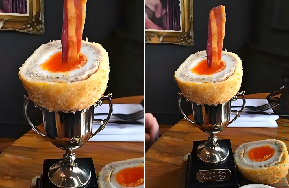 People who didn’t know what Scotch eggs were until now might be thinking that there’s no way someone would order an egg like this. However, it’s not the order that’s odd, it’s the fact that they brought it in a tiny trophy cup that looks like something a child would win at a karate prize.