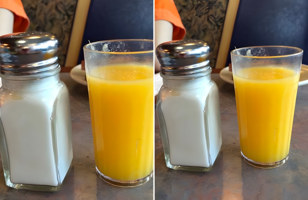 This is so ridiculous, it almost looks photoshopped. One restaurant customer ordered a small orange juice. They got a small orange juice, except the OJ cup was so ridiculously tiny that it was the same size as the table’s saltshaker (which was not larger than average).