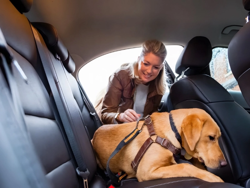 For everyone’s comfort and safety when transporting your dog in the car, careful planning and preparation are necessary. To stop drivers from becoming distracted, use harnesses or crates. Schedule rest and exercise periods during lengthy travels. Pack toys or chews, bowls, cleaning tools, and water. If your dog is nervous or carsick, get them used to the vehicle gradually. Avoid eating just before your trip to avoid feeling queasy. Use the A/C or open the windows to maintain a pleasant temperature. Ensure that your dog is tagged and microchipped for identification in the event of an accident. Traveling in the car with your dog doesn’t have to be a hassle if you follow a few easy tips.