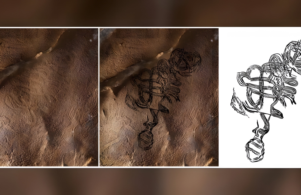 The enigmatic figures, like an 11-foot diamondback rattlesnake and four elaborately adorned humanlike figures, suggest spiritual significance. Caves held sacred roles as gateways to the underworld in Native American tribes, amplifying the mystery of these ancient artworks, bringing an unseen chapter of history to light. This bizarre-looking symbol was likely part of some sacred ritual, thousands of years ago.