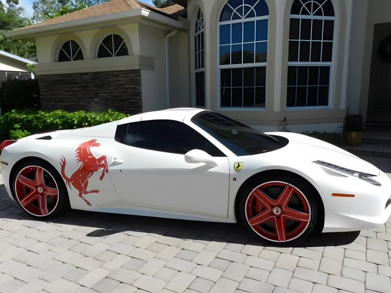 NFL player Julio Jones has become one of the well-known sportspeople who own a Ferrari Spider. His is a red and white Ferrari 548 Italia Spider that has been customised, and near the back is an emblem of a charging horse.