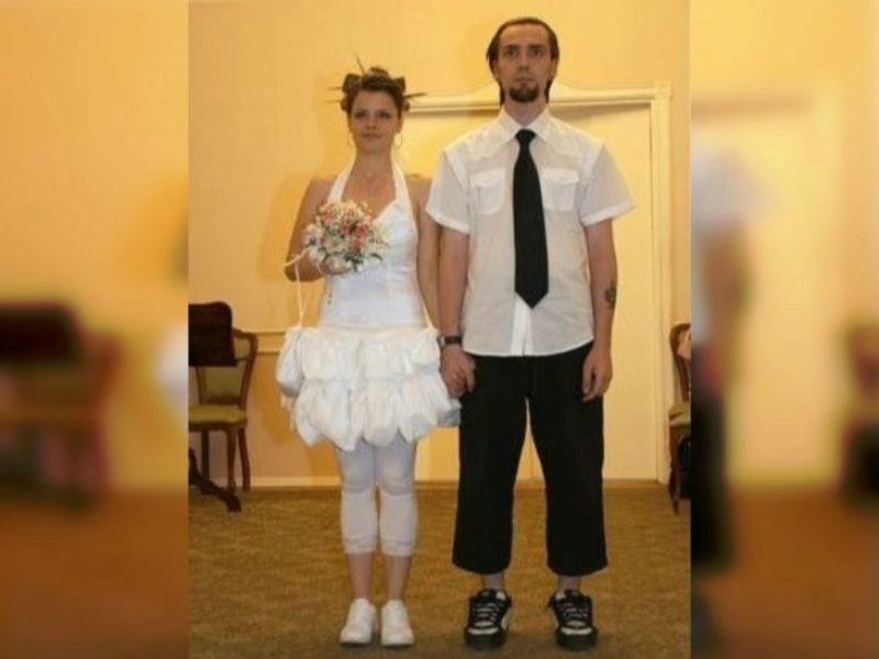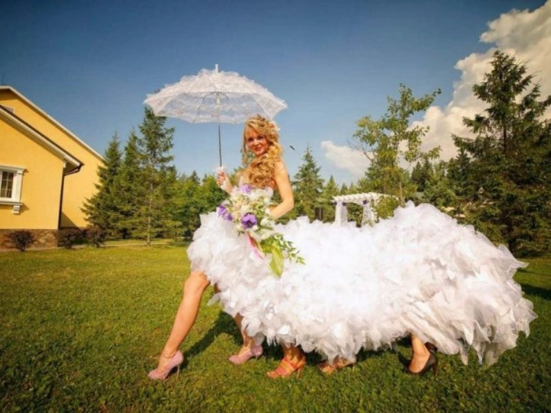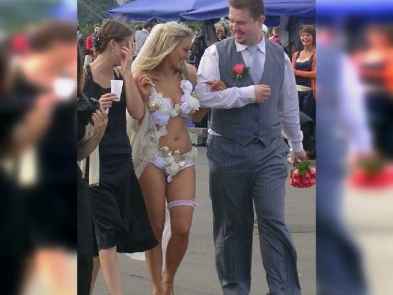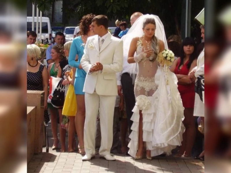 A compilation of the worst wedding attire photos. These gowns serve as a striking illustration of what not to wear to your own wedding.