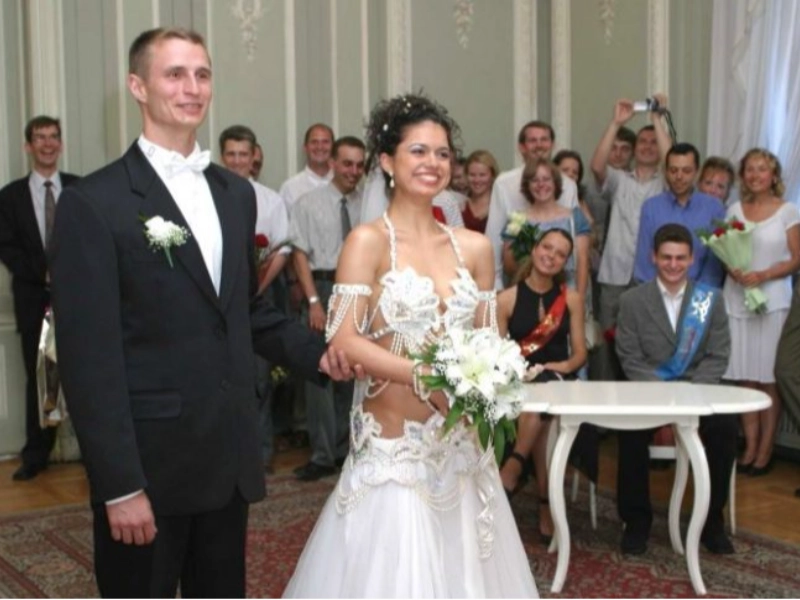 The bride is nearly nude.