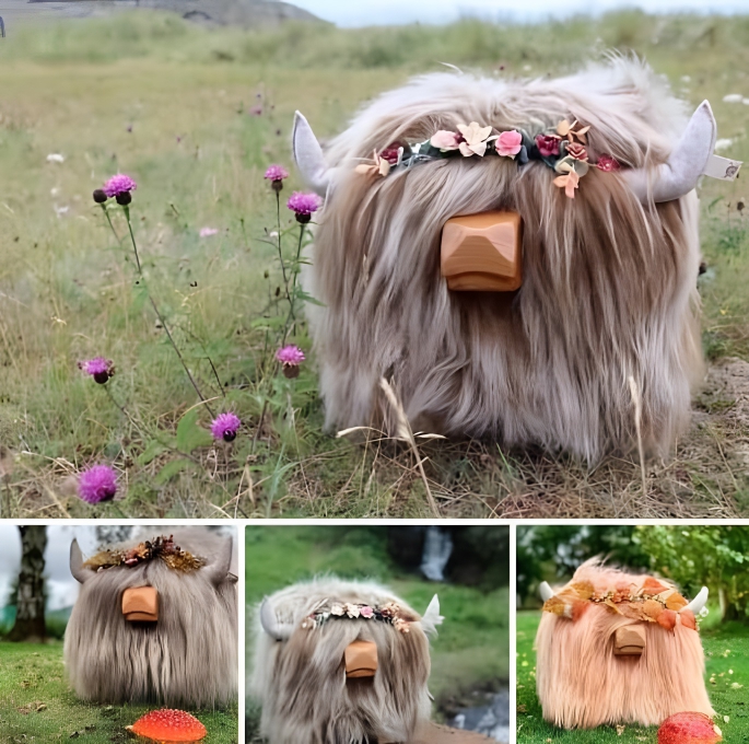Fluffy “Highland Cow” Footstools That Steal the Spotlight