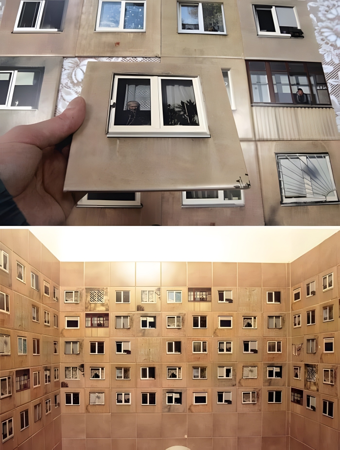 This just might be the newest trend in bathroom decor, where creepiness seamlessly meets creativity. These tiles, crafted by Gyva Grafica, a Lithuanian design studio, are bringing a whole new meaning to the term ‘window shopping.’ Now, you can be the star of your own shower show as tiny illustrated figures peer in from their balconies and windows. These miniature apartments appear to be enjoying the view as they watch from their ceramic vantage points.