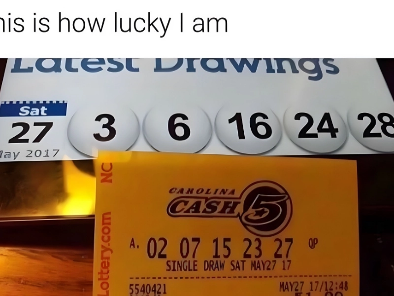 “3, 16, 16, 24, and 28” were the winning lotto numbers for this drawing held on May 27, 2017. The numbers of this man were “2, 7, 15, 23, and 27.” He was off by just one, plus or minus, on each number, as you can see.