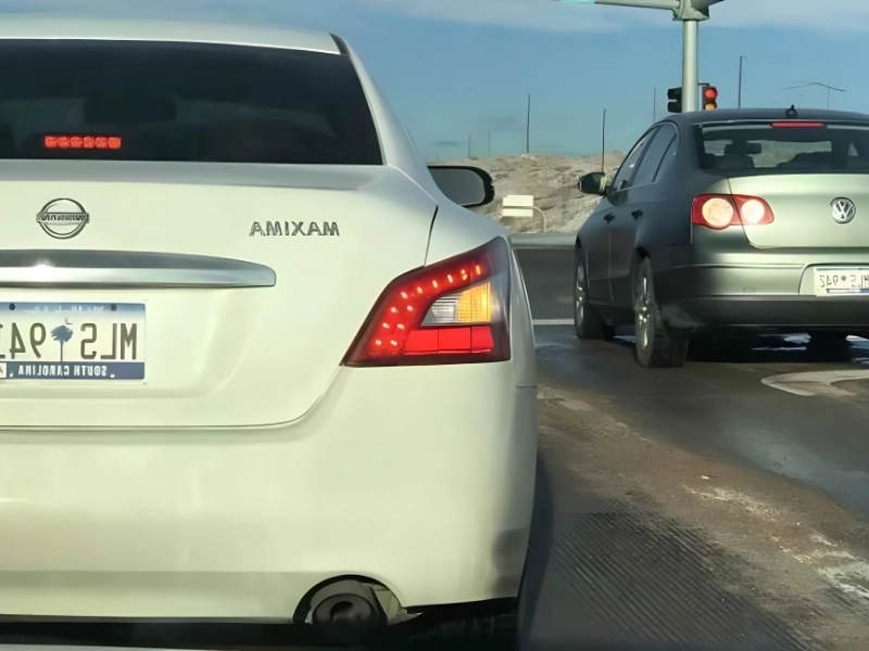 According to the South Carolina Department of Motor Vehicles, these two license plates are consecutive. These two must have ordered their plates immediately after one another because they managed to appear next to one another at a stop sign.