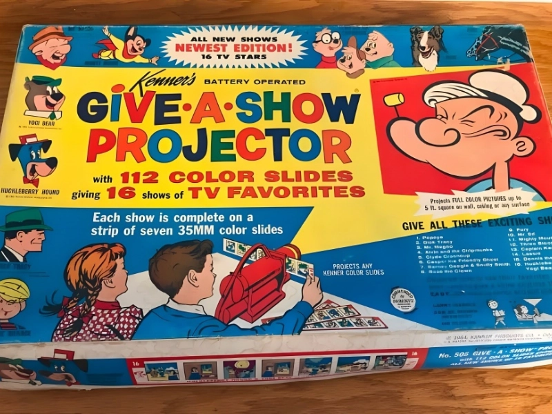 With its cutting-edge slide projector that brought cartoons and stories to life on their own walls, Kenner’s Give-A-Show Projector captivated young audiences and transformed living rooms into movie theaters. When it was first introduced in the 1960s. this toy was a creative entertainment marvel that let kids organize their own movie nights using slides that had their favorite characters and scenes on them.