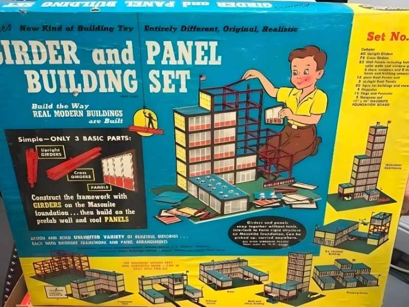 Initial cost: $5.99* Create your own universe with the cutting-edge construction toy that transformed living rooms into cities—Kenner’s Girder and Panel Building Sets! These sets, which were introduced in the 1960s, let aspiring architects create and construct their own buildings, ranging from suburban houses to skyscrapers.