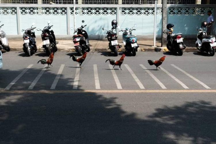 There are always a lot of different animals on the streets of the cities of Thailand.