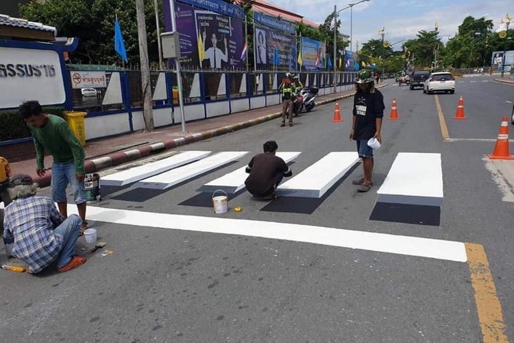 Pedestrian crossings in Thailand are often in 3D to capture the attention of drivers.