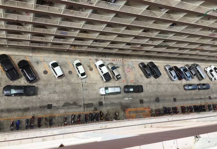 Such parking in Thailand is normal – the second row of cars is in neutral gear, they are simply shifted to leave.