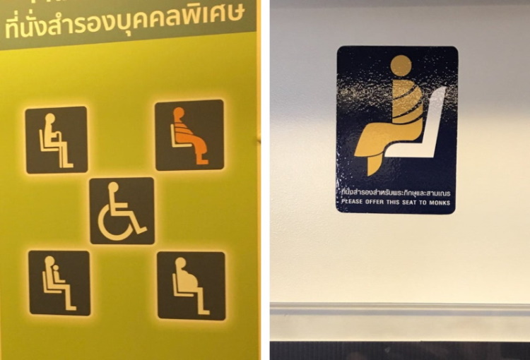 Monks in public transport in Thailand have the same privileges as the disabled and pregnant.
