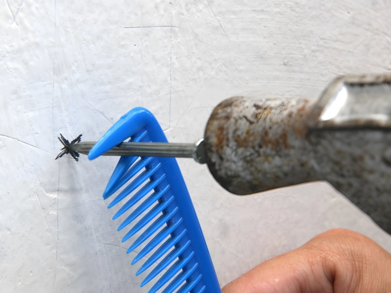 You don’t need to go to Home Depot or Lowe’s and buy any expensive equipment if you want to hold a nail stable while you hammer it. Simply use a standard comb, such as the $1 variety available at any dollar or beauty supply store. Additionally, the comb will shield your fingers.