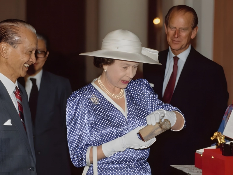 Three marble seals, each with a distinctive design, were given to Queen Elizabeth and Prince Philip by Singaporean President Wee Kim Wee in October 1989. The two smaller rectangular seals were personalised and stood upright. Prince Philip had one made for her, and Queen Elizabeth had the other.