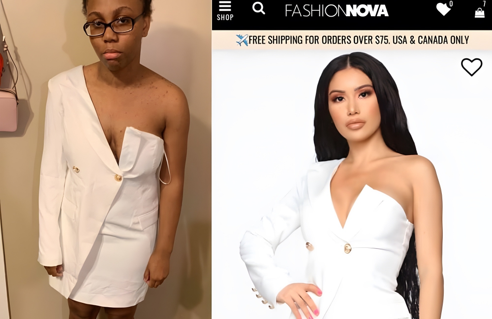 It’s not just knock offs that can leave a sour taste in your mouth. Sometimes, it’s original designs that really make spending money on anything online seem like a total lottery. This “suit dress” was purchased on FashionNova, but it didn’t exactly look just like the photo.