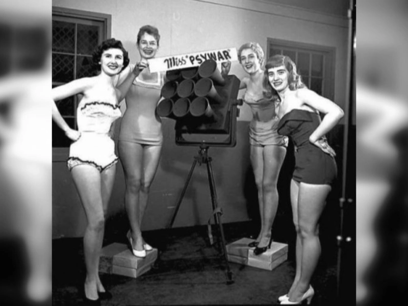 There were only four girls that entered the competition, and they were pictured next to homemade loudspeakers. It is said that the competition’s goal was to show how deceitful and propaganda techniques were employed in World War II.
