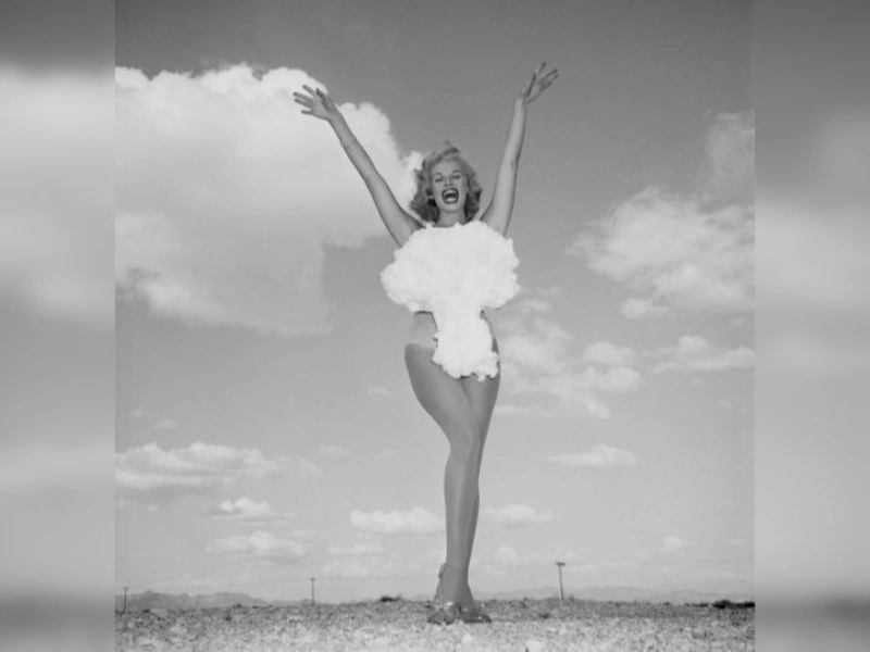 Lee Merlin, a dancer, was the most well-known “Miss Atomic Bomb” of 1957. Her image became associated with America during the 1950s.