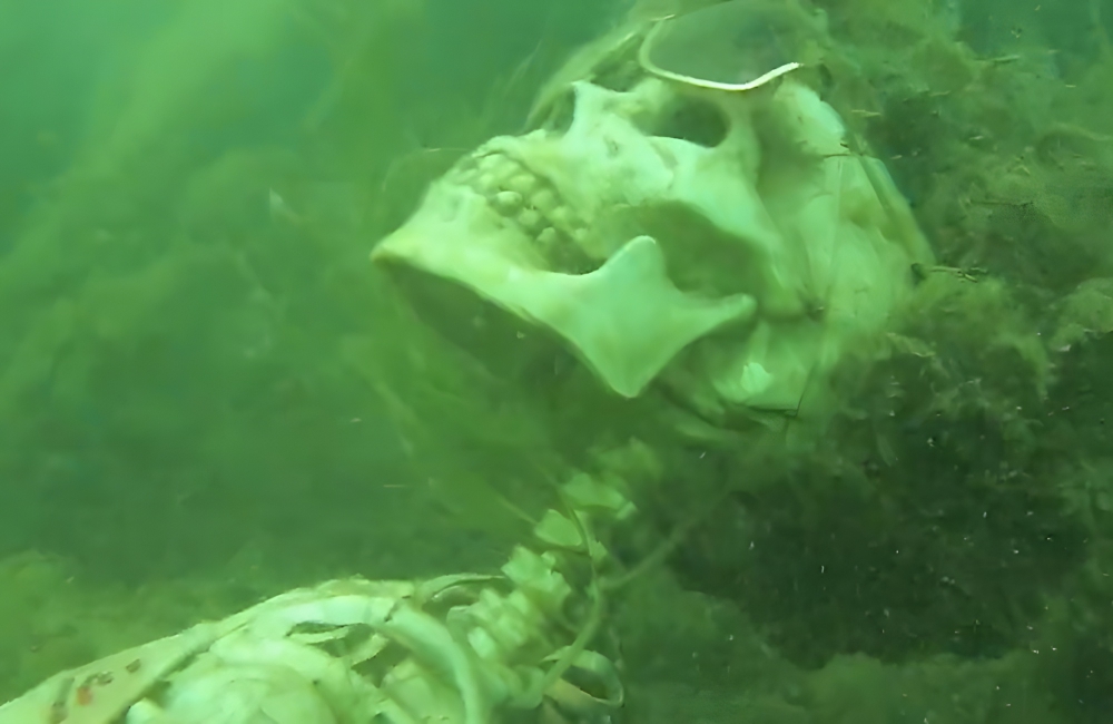 La Paz County Sheriff deputies teamed up with the Buckskin Fire Department in Arizona when the former got a call about possible human remains in the Colorado River. A diver went down with a video camera to inspect, and there, he found two skeletons having a tea party.