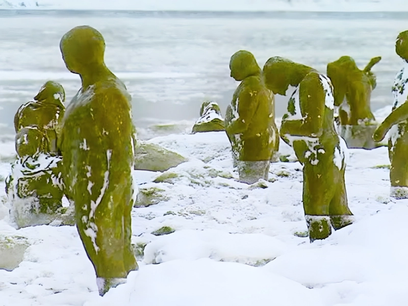 A few years ago, on the desolate beach of Point Woronzof, near Anchorage, some Alaskans were surprised to discover a group of eerie figures loitering in the ice and snow. They appeared to be actual people in difficulty from a distance. But as it happened, Sarah Davies’s uncanny forms were actually an art project.