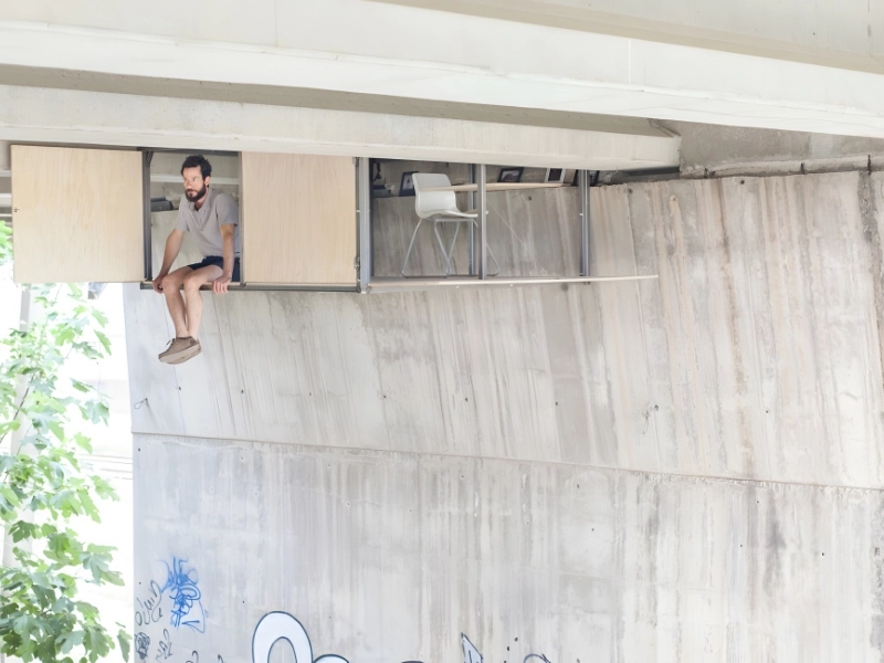 8. Man Builds Hidden Studio Suspended Under Bridge