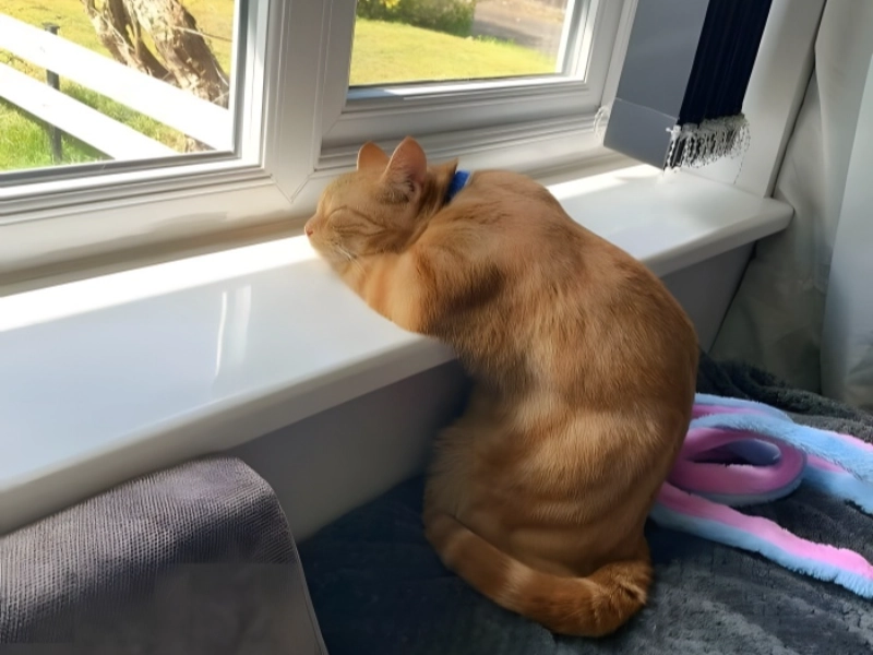 Being a cat presents a difficult existence, really. From window bird viewing to wild outdoor exploration, these guys have a lot on happening. And Eddie the cat most definitely feels the weight! He simply couldn’t keep his eyes open following a long, demanding day of bird viewing from the window. And with that smile on his face, we can only surmise he is dreaming of catching them! His slightly twitching whiskers in sleep point to possible deep in a pursuit sequence activity in his nightmares. Eddie simply seems so relaxed in his dozing position, particularly when some sun is beaming on his face. He strikes me as a very refined gentleman like this! The sunbeam deliberately warming his fur makes the ideal natural heating pad, proving cats’ natural ability to locate the most cosy areas in any house. His calm demeanour and soft look really convey the spirit of a cat’s life; hence, even the most ordinary activities, like bird watching, feel like demanding labour deserving of a well-earned rest.