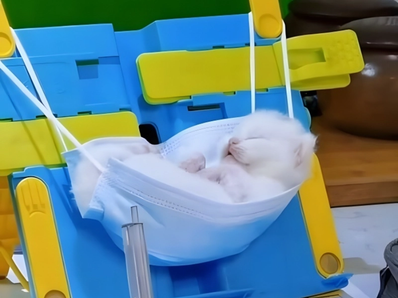 Are there extra face masks hanging about? For the tiny kittens of the world, these objects might create the ideal nap place. Particularly if you have some homework to finish! This owner created this amazing cat hammock when they needed to complete their work without their kitty prowling over it. And we have to confess this seems quite cosy. And it is the ideal scale. Using common objects to create pet furniture, this imaginative approach highlights human inventiveness at its best. Though this is a fantastic concept, if this gorgeous specimen were sleeping next to us, we would most likely find it difficult to finish projects. We could spend endless hours staring at it. The homemade hammock’s soft swaying motion most likely helps the kitten relax by simulating the natural rocking motion many newborn animals find comforting. This do-it-yourself fix not only makes the kitty content but also shows how creatively pet owners sometimes address problems to fit their animal companions.
