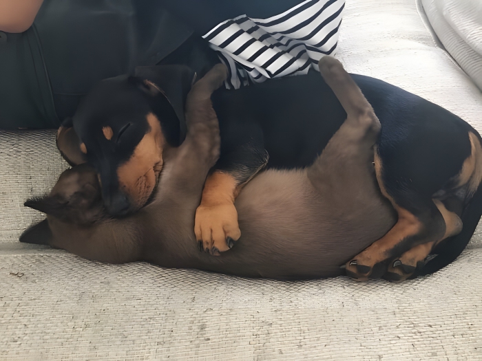 Of course, we don’t know how the cat feels about this arrangement. But anyone and anything would be happy to sleep next to a cute sausage dog, wouldn’t they? Yes, we thought so.