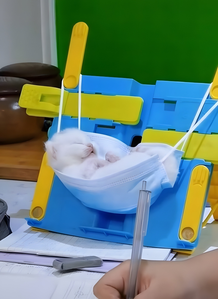 Do you have some spare face masks hanging around? Well, these things could make the perfect napping spot for the small kitties of the world. Especially if you’re trying to get some work done! When this owner needed to finish their work without their kitten climbing all over it, they fashioned this impressive kitten hammock. And we have to say that this looks incredibly comfortable. And it’s the perfect size.