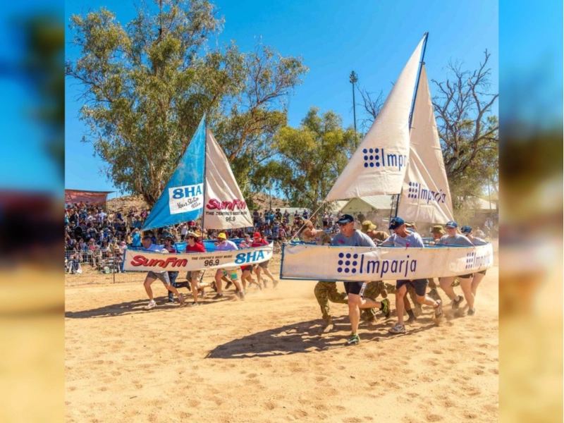 is a distinctively Australian occasion held in Alice Springs, a settlement in the desert that is remote from any bodies of water. Rather than rowing on a lake or river, competitors race in bottomless “boats” across the Todd River’s dry riverbed.