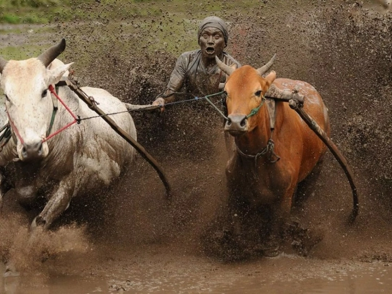 Also referred to as “cow dashing” or “cow running,” this activity is well-liked in Thailand and Indonesia, among other nations. It entails cows racing on a track on a sled pulled by a jockey at great speeds, frequently in front of excited spectators.