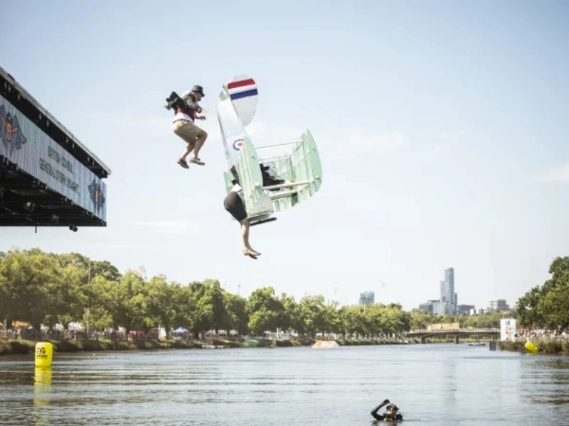 Birdman Rallies are absurd contests in which competitors build and don imaginative costumes before leaping off platforms in an effort to fly an unpowered, human-powered aircraft. This frequently results in humorous and unusual flight attempts.