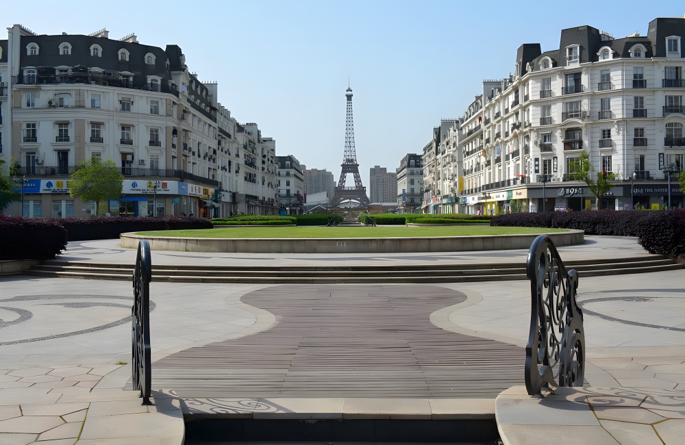 Tianducheng, located in Hangzhou, China, is a former ghost town that was designed to look like a miniature version of Paris. It was also known as Sky City, and its central feature was its 354-foot-tall replica of the famous Eiffel Tower. In Tianducheng, there are other features of Parisian design as well, including fountains, landscaping, and architecture.