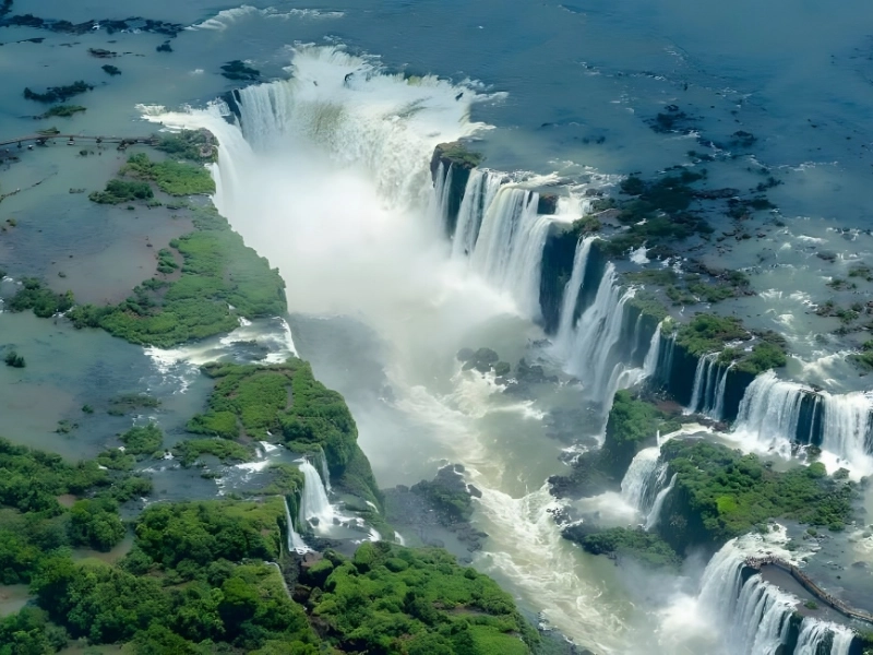 Argentina and Brazil are separated by the magnificent Iguazu Falls, a magnificent natural wonder. The Iguazu Falls, which are made up of more than 270 cascades spanning the river, produce a breathtaking exhibition of the strength and beauty of nature. This UNESCO World Heritage site provides a singular experience from both countries; Brazil offers panoramic views of the enormous expanse of cascading water, while Argentina hosts most of the falls, including the well-known Devil’s Throat.