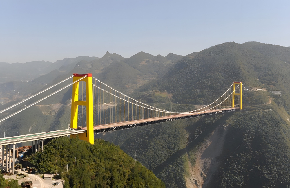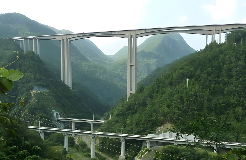 The Liuguanghe Bridge spans 974 feet, making it the highest beam bridge in China. It is among the top twenty highest bridges in the world, carrying the China National Highway 321 over the Wu River.