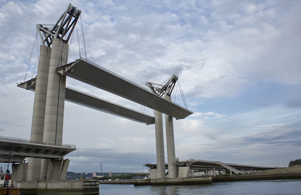 The Gustave-Flaubert spans 2,200 feet and clears 23 feet when closed at 180 feet when opened. The daily traffic is around 50,000 vehicles a day. The lift section opens thirty times a year, including for the Rouen Armada and to let cruise ships from companies like Royal Caribbean, Ponant, and more pass.