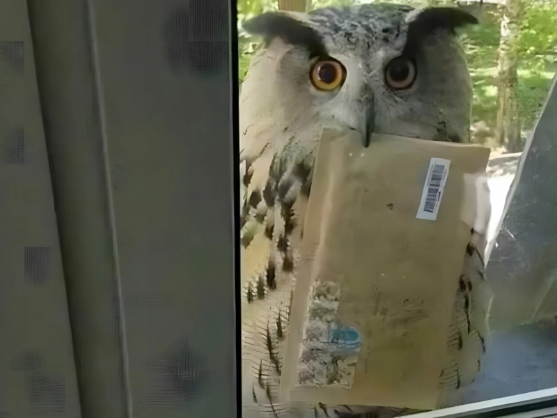 As Harry Potter receives his admission letter to Hogwarts through mail delivered by an owl, we all anticipated receiving one when we were kids! This owl chose to infuse life with a little magic by carrying a letter in its beak and carrying it over the front door, fulfilling all of our Potter fantasies.