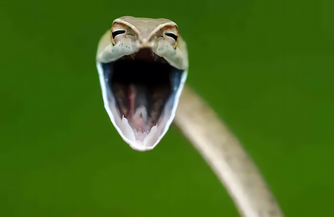 Though the Vine Snake might look as though he is having a chuckle, he’s actually quite peeved. These snakes, which are common in India’s Western Ghats region, show aggression by opening their mouths wide. Though they want to look fearsome, we humans can’t help but think they look adorable.