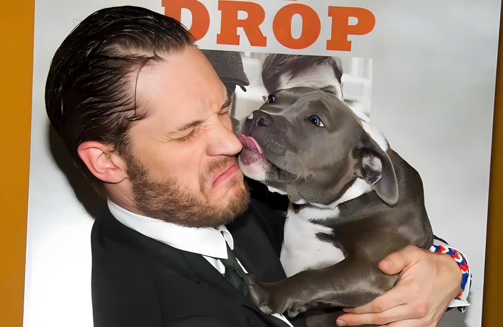 This picture features the ever-famous Tom Hardy with his The Drop co-star dog Rocco. It seems like Rocco loves Hardy as much as we do! But don’t let the picture fool you: Hardy loves dogs more than anything in the world and also loves hanging out with other celebrities who share his liking of pit bulls.