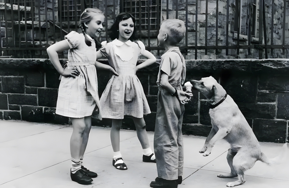 This adorable picture features the joys of childhood, where talking to two girls was the biggest nervousness-causing event in every boy’s life. Those simple days! Not only does this picture perfectly encapsulate this canon event that happened once or twice in every guy’s life, but it also depicts how the moment can make them so oblivious to their surroundings that they don’t even realize their doggo is sneaking a treat behind their back!