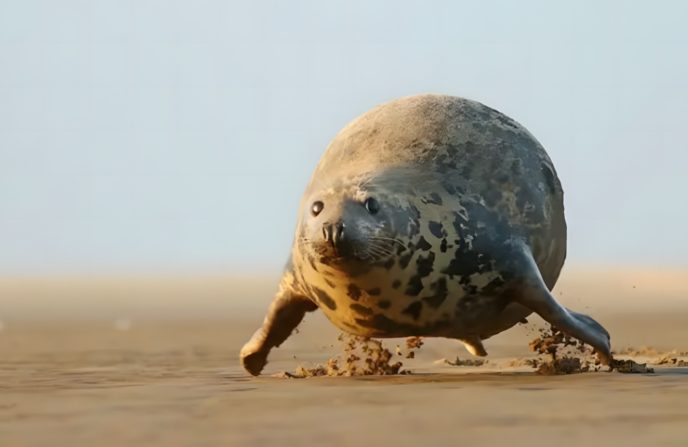 Who said seals can’t hustle? Meet Sammy, the speedster of the sandy shores! While most seals are busy lounging and catching some rays, Sammy seems to have a different agenda. Perhaps he’s seen an open spot in the shade or he’s just racing to beat the lunchtime crowd at the local fish food truck.