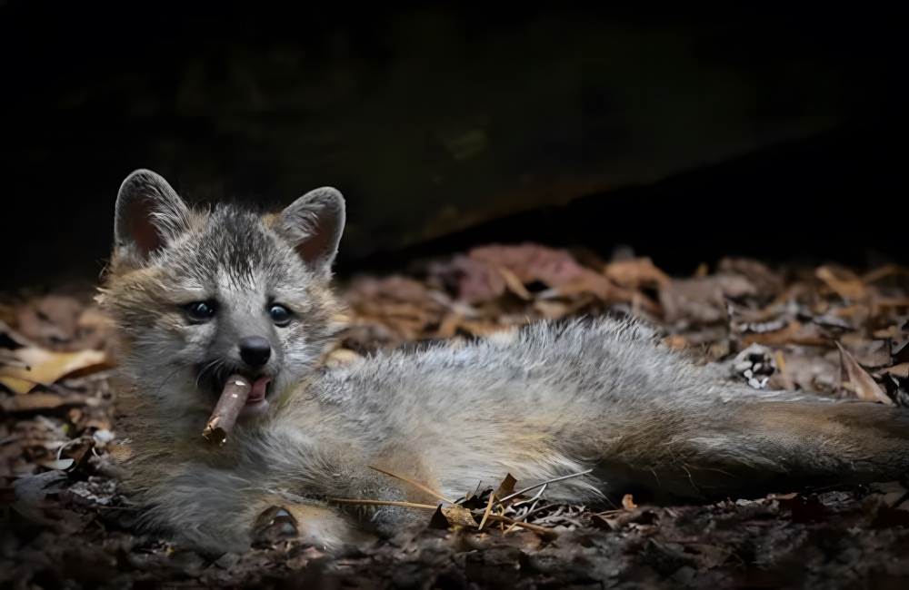 But it was one young kit’s mischievous antics that truly stole the show. Mistaking a piece of wood for prey, the eager foxlet found himself battling a wooden foe. Victorious, he lay exhausted, clutching his “catch” which curiously resembled a finely rolled cigar. This captivating moment, bathed in the earthy tones of the forest floor, reminds us of the joy and spontaneity that nature holds at every corner.