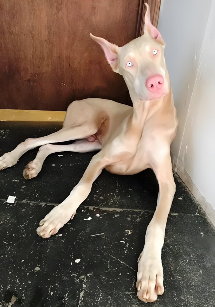 This is Spade, the amazing Albino Doberman. This not-so-little puppy has golden cream hair and super light blue eyes. Have you ever seen a Doberman who wasn’t all chocolate brown? What a beautiful look, he could be a successful pet model. Watch out world, there is a new Doberman in town! He will steal all your dog girlfriends…and probably human girlfriends as well. Welp, what can you do? Just bask in the beauty.