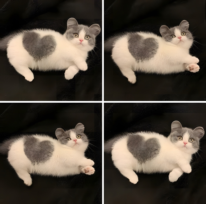 Mickey Mouse cat, panda cat, whatever you choose to call it; it’s the most wholesome cat. So precious with its grey and white fur. Hearts for the heart kitty!