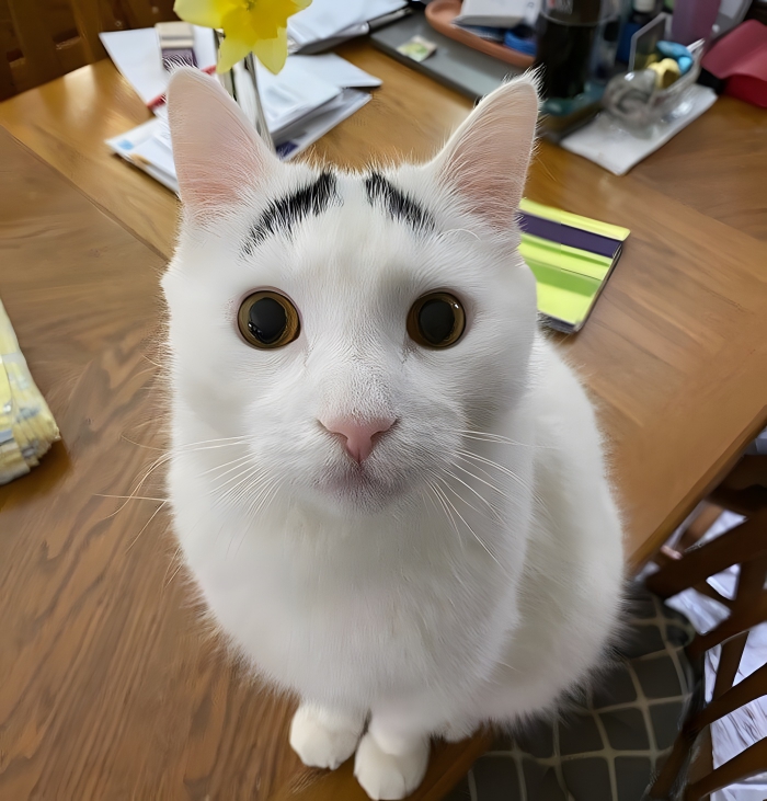 This pet owner posted a picture of their cat, named Sam, to show off their cat’s eyebrows. We have to say, we’ve never seen a cat with eyebrows quite like Sam’s. This kitty has all-white fur and two perfect bushy black patches right above its eyes. We’re sure Sam’s owner bursts out laughing at random moments when looking at their cat. Sam just looks so confused with those eyebrows.